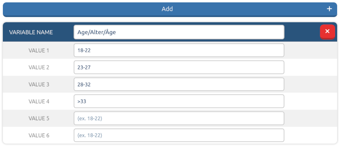 The next page lets you create discriminant variables to group responses according to respondent groups (men, women / group 1, group 2, group 3 / weak students, average students, strong students / etc.). To do this: